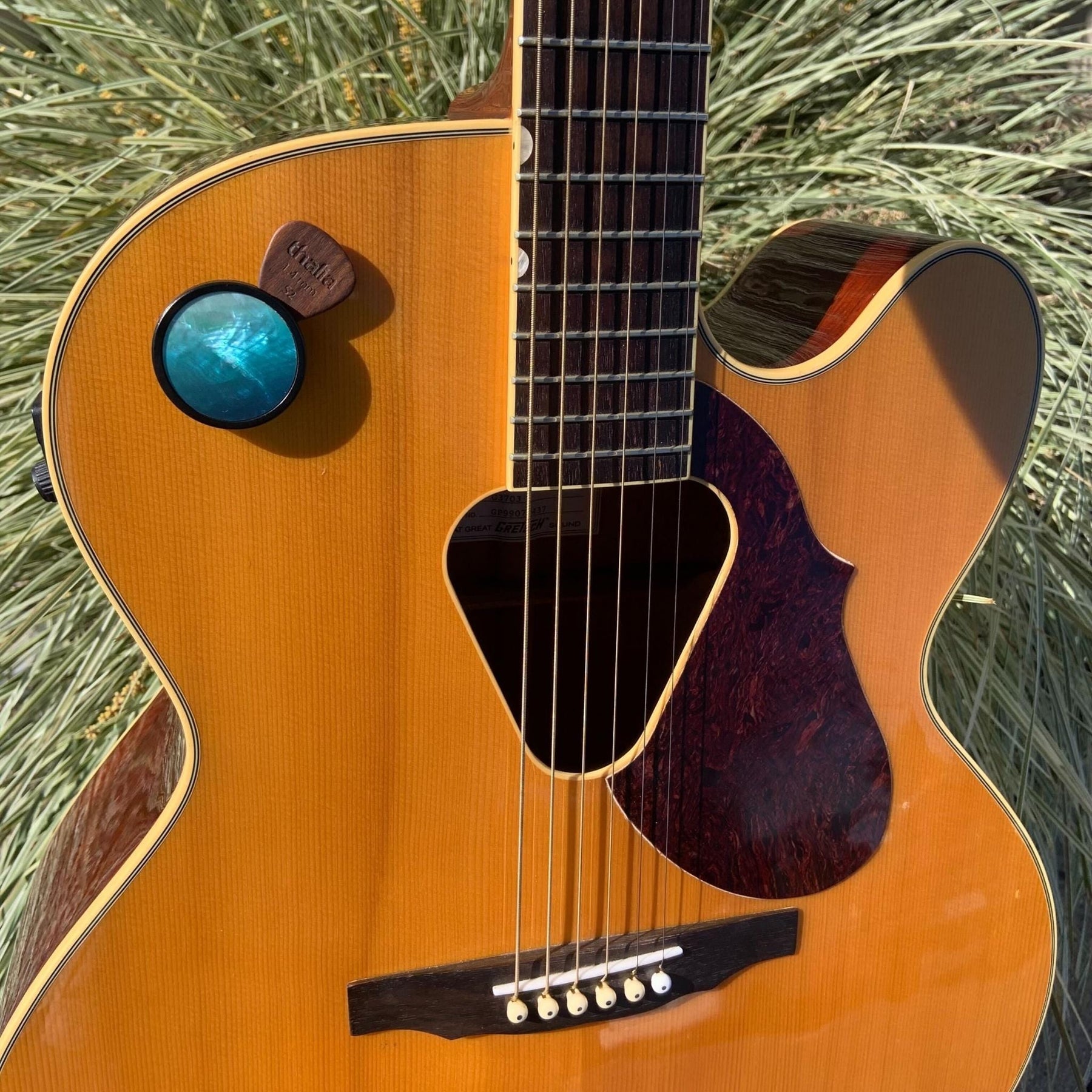 Our patent-pending pick puck is the ultimate guitar pick holder. Stick anywhere that is most convenient for you! See photos below for application ideas!