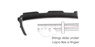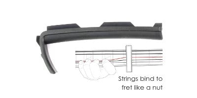 Our Teflon Fretpad’s material attributes are the complete opposite of rubber. While rubber is soft and binding, Teflon is hard and slippery. These characteristics, produce a noticeably more vibrant tone and allow the strings to bend and slide beneath the capo, which help to keep your guitar in tune. This makes teflon act like a finger instead of a nut. Comes in both standard tension and high tension (2mm thicker) configurations. Teflon Standard Tension Fretpads, work with all 6-strings, while High Tension Fretpads are designed to handle Mandolins, Ukuleles & thin necked guitars. * Not to be used with 12-strings or Baritone guitars.